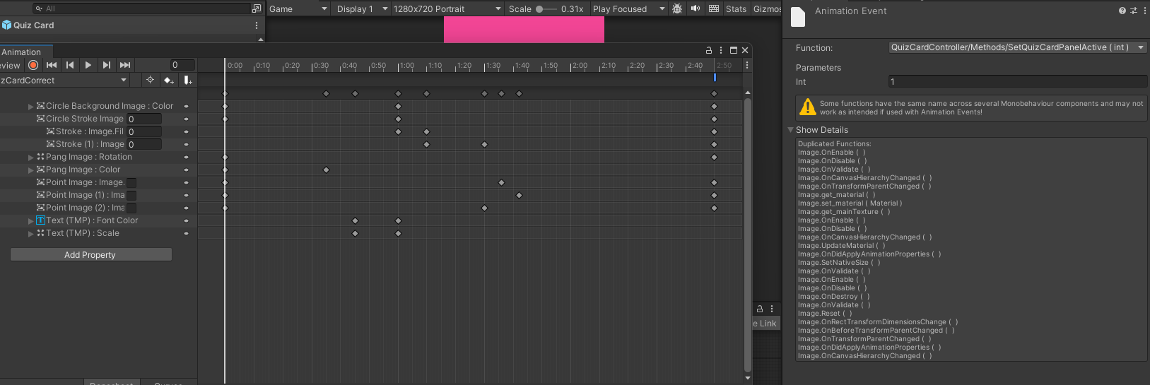 SetQuizCardPanelActive로 보내면서 애니메이션도 재생하라고 보낸다.