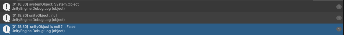 Debug.Log($" unityObject is null ? : {ReferenceEquals(unityObject, null)}");